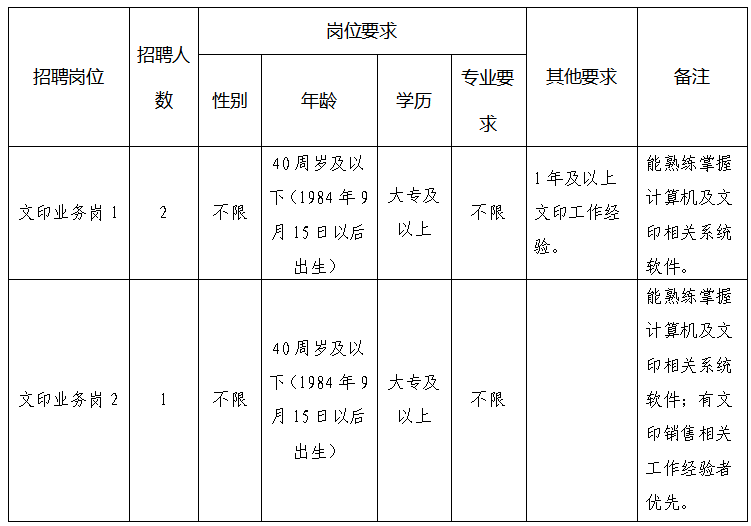 (五)岗位要求年龄为35周岁及以下的需在1989年9月30日以后出生,40周岁及以下的需在1984年9月30日以后出生,45周岁及以下的需在1979年9月30日以后出生;