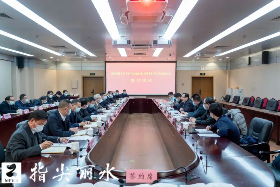 昨日下午,我市与国家开发银行浙江省分行签署了丽水市城区海潮河老旧小区改造暨历史街区建设项目、遂昌县生态产品价值实现暨城乡融合建设项目相关合作协议。市委副书记、市长吴晓东,国开行浙江省分行行长刘新致辞,副市长楼志坚主持。