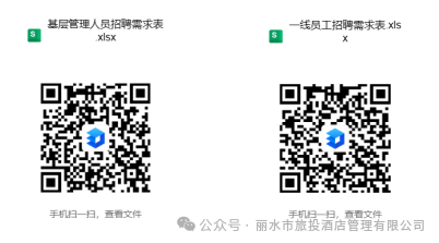 (二)本次公开招聘有关信息在“丽水市文旅集团”公众号、“丽水市旅投酒店管理有限公司”公众号,供报名人员查询和社会监督。请报名人员保持通讯畅通,自行留意,不再另行电话通知。